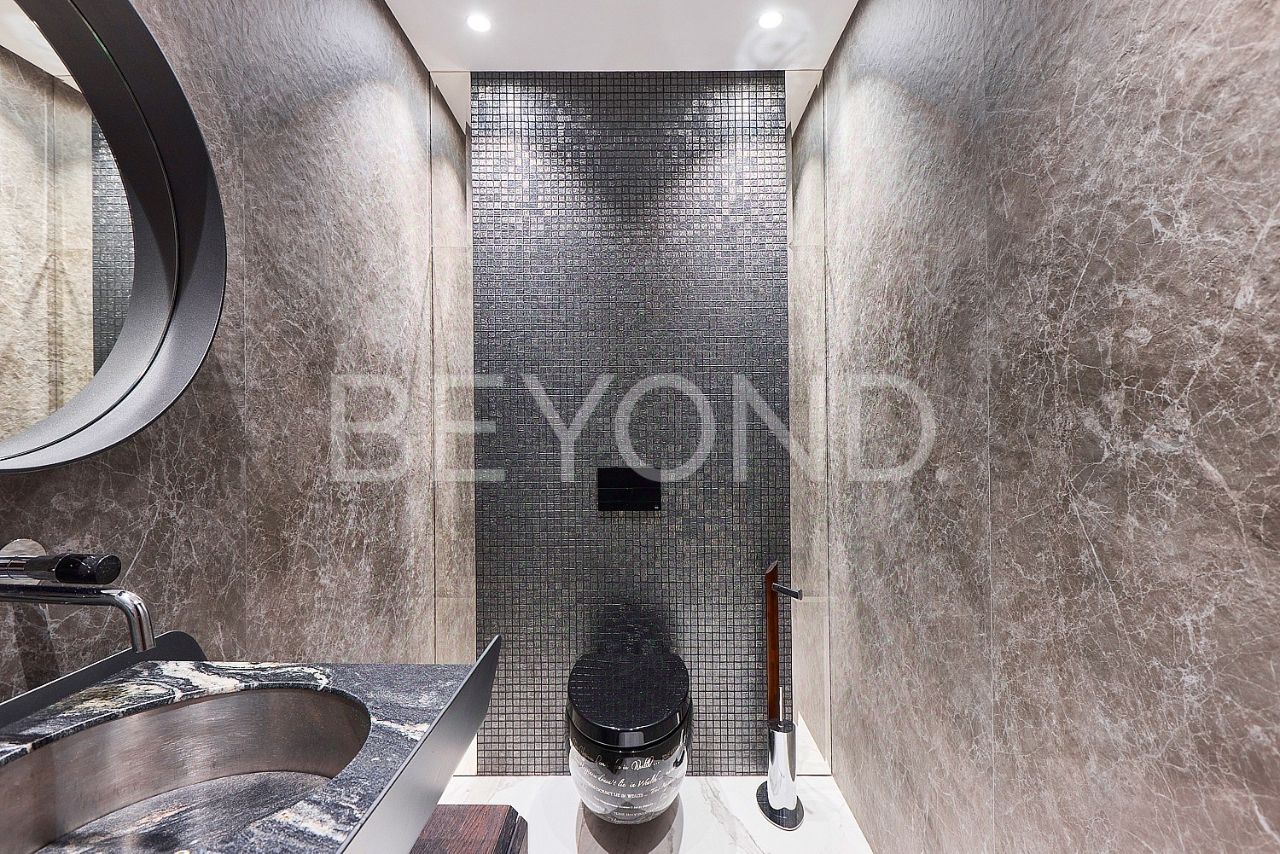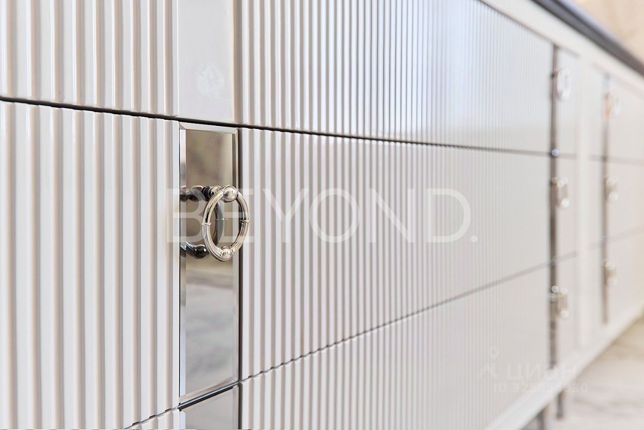 Предлагается к покупке трехэтажный дом 594,7 кв. м, с террасой 40 кв. м с панорамным остеклением, гаражом на три а/м и банным комплексом. Элегантный объект со стилистикой Ар-деко: много блеска, полутона природных красок, четкая геометрия каждого помещения. Баланс между металлом, деревом, камнем и стеклом. Место, где много света и воздуха. В доме 7 спален, 4 санузла, кабинет, гостиная-кухня-столовая, детские, кинотеатр, технические помещения и мансардная часть, куда выведены все инженерные узлы. Первый этаж единое пространство, в котором соединены гостиная с камином с отделкой из оникса, кухня и столовая с выходом на террасу. Кухня с итальянскими комплектующими и техникой Kuppersbusch. Зонирование делает особенно красивым сверкающие люстры и отделка камнем.