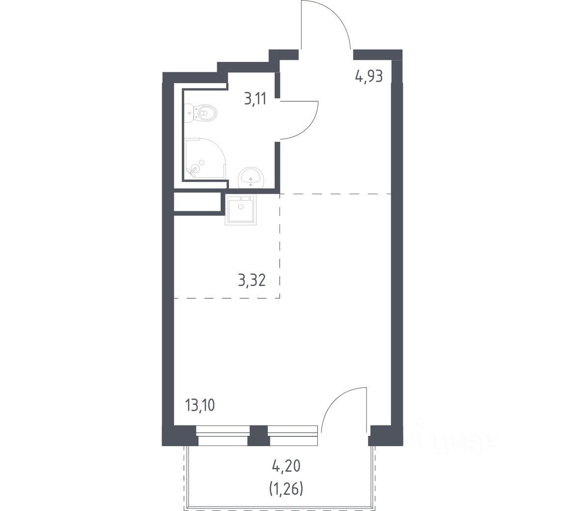 Строим кварталы для жизни с заботой о будущем. Предлагается студия комфорт-класса площадью 25,72 кв.м в корпусе 1.3 на 4-м этаже, в жилом комплексе ''Новые Лаврики''.
