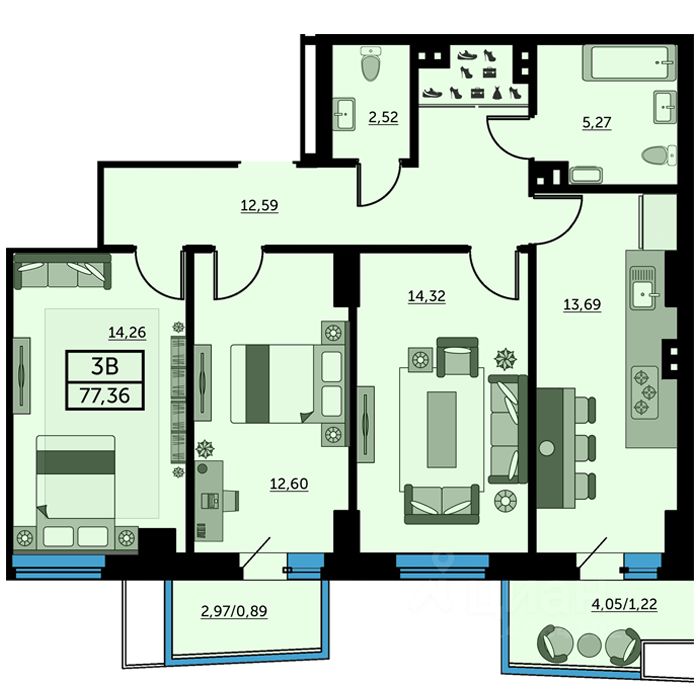 В продаже трехкомнатная квартира в новостройке. Лучшее решение для жизни, под сдачу или для инвестиций. В просторной прихожей-коридор выделено место для хранения вещей, также есть вход в ванную комнату и дополнительный санузел. Главная особенность данной квартиры - это большие окна, балкон и уютная лоджия. Успейте приобрести квартиру от застройщика по доступной цене.