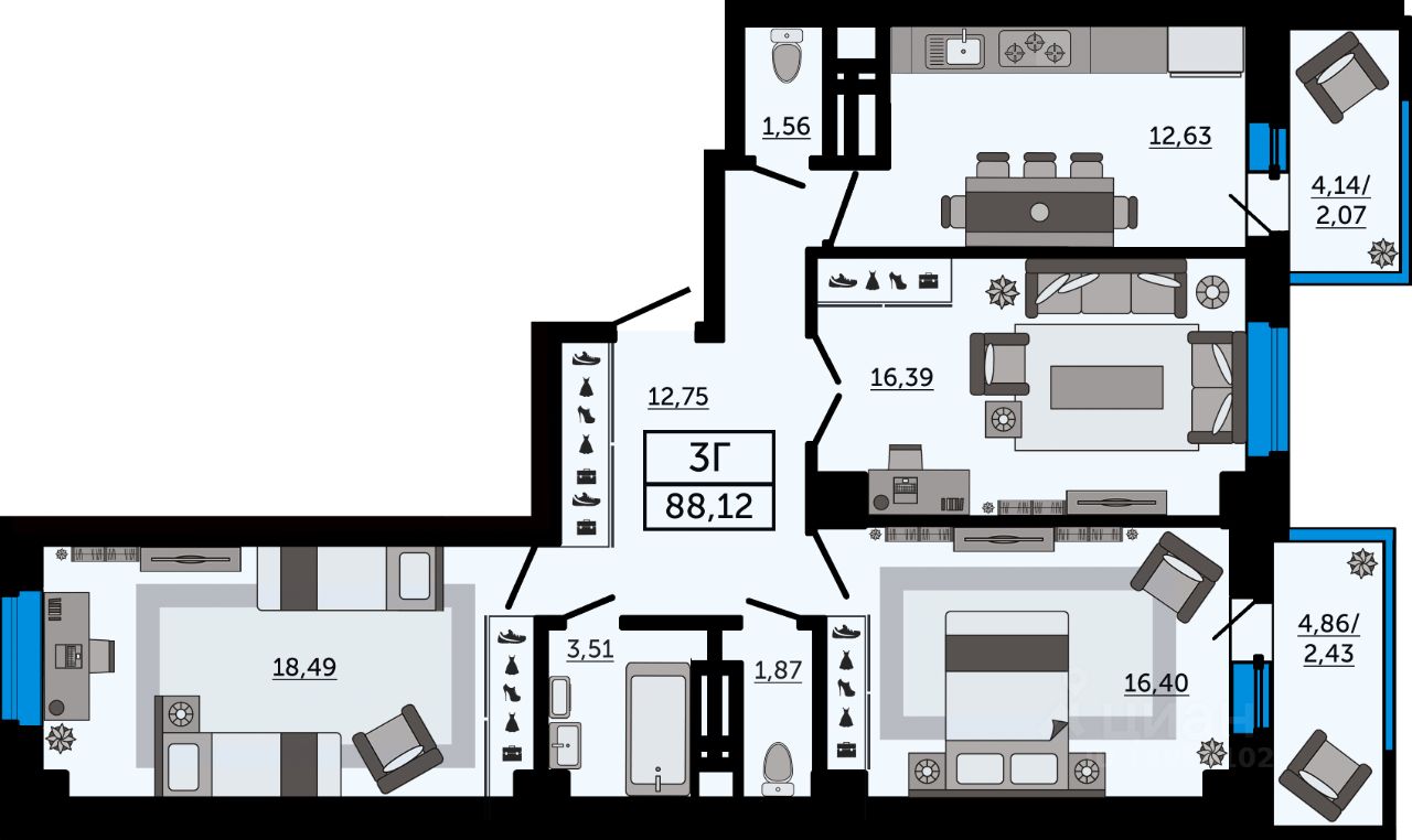 Общая площадь88,1 м2