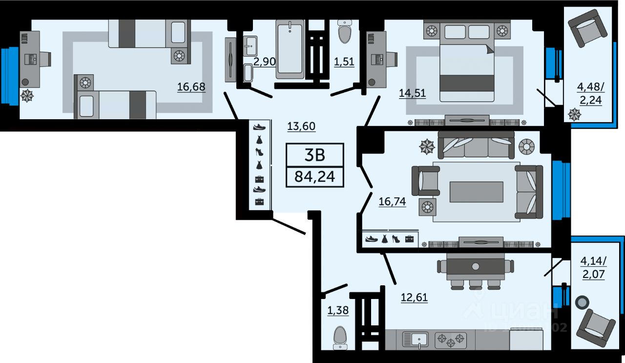 Общая площадь84,24 м2