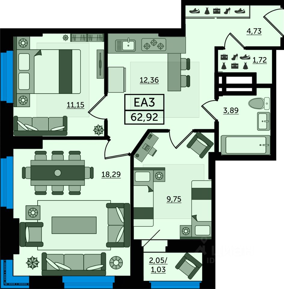 остаток суммы необходимо внести в течение месяца после окончания льготного периода. Срок ввода в эксплуатацию 2 квартал 2026 года. В этом месяце на квартиры действует специальное предложение: платеж на 70% меньше на период строительства.