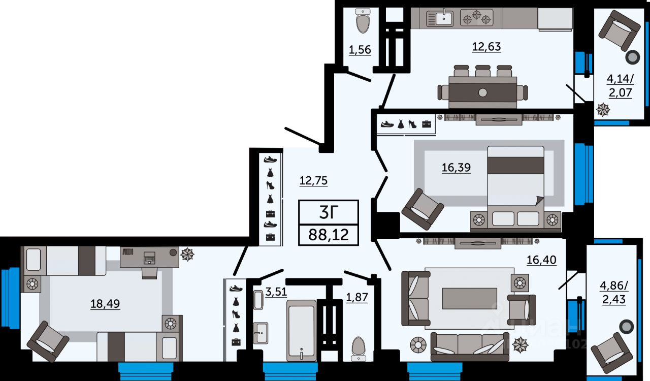 Общая площадь88,12 м2