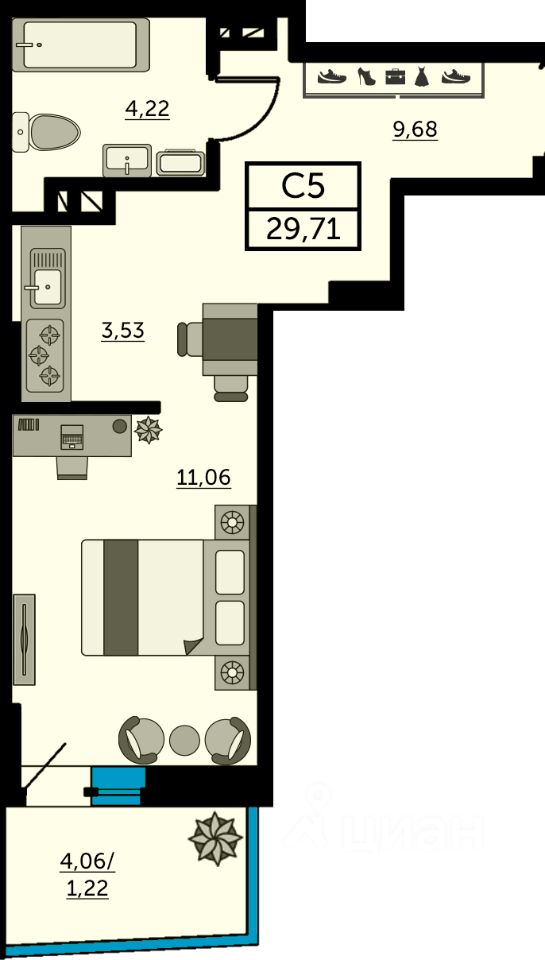продам 1-к, Ларина, 45 ст54 619 000 ₽