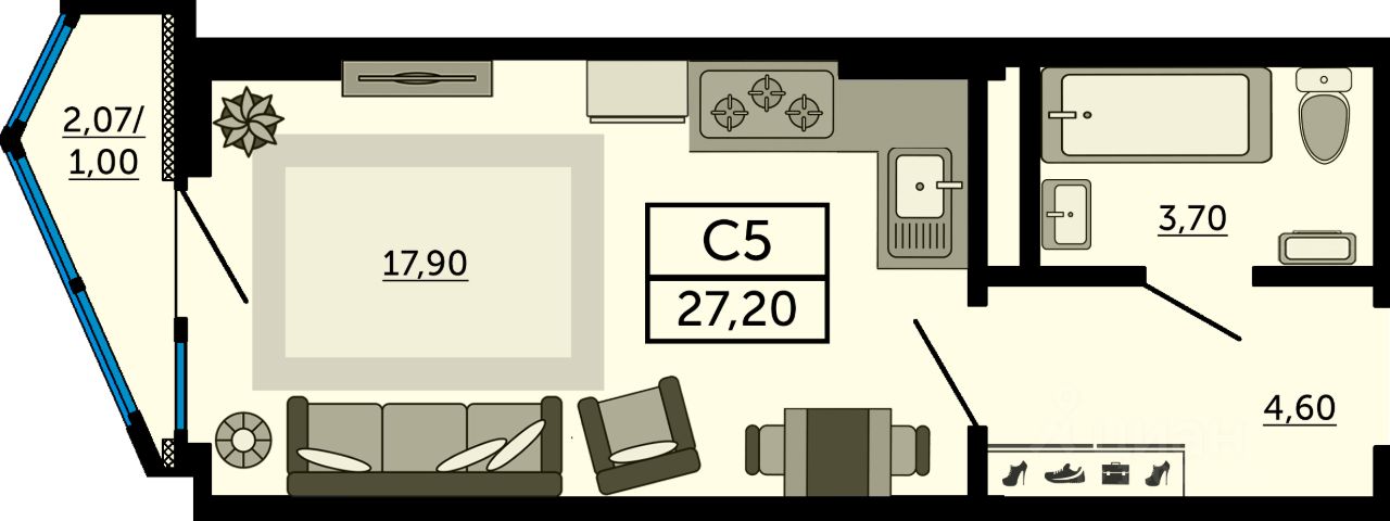В продаже квартира-студия в новостройке. Лучшее решение для молодой семьи, под сдачу или для инвестиций. Это современный вариант просторной студии с полноценной прихожей. Благодаря продуманному зонированию при входе достаточно места для кухонной зоны или для хранения вещей. Успейте забронировать квартиру мечты напрямую от застройщика.