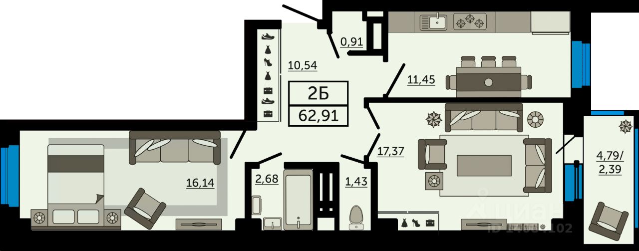 В продаже двухкомнатная квартира в новостройке. Лучшее решение для жизни, под сдачу или для инвестиций. Это уникальная квартира-бабочка с видом на две стороны, которую можно сейчас приобрести по выгодным условиям. Планировка квартиры организована с учетом максимальной функциональности. Здесь две просторные комнаты, большая прихожая и раздельный санузел. На начальном этапе строительства самые выгодные предложения. Успейте забронировать идеальное место для жизни напрямую от застройщика.
