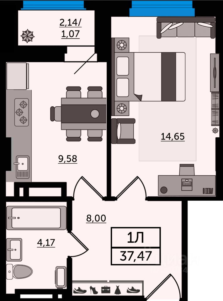 Общая площадь37,47 м2
