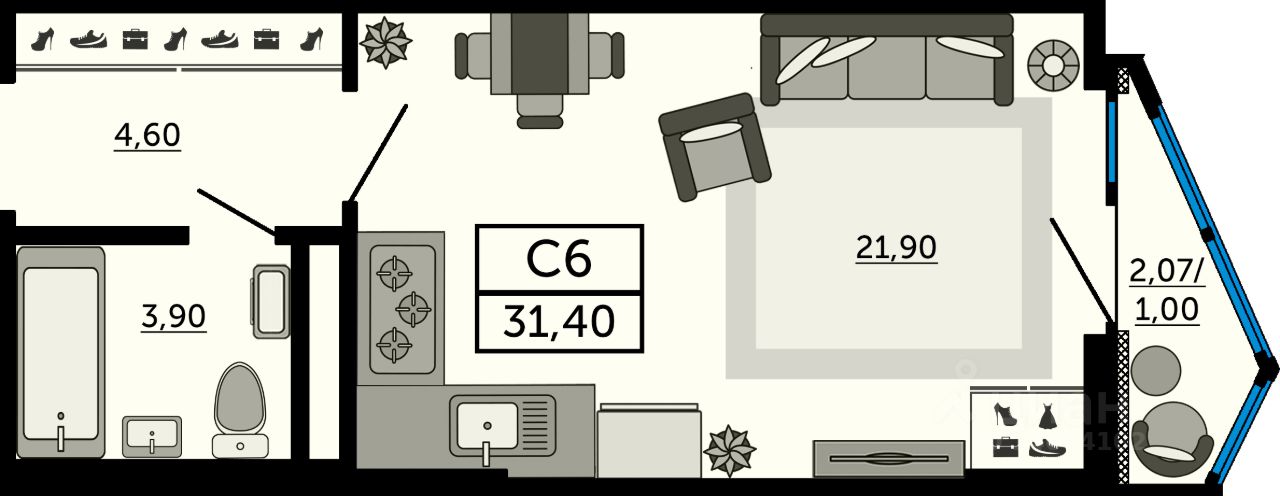 В продаже квартира-студия в новостройке. Лучшее решение для молодой семьи, под сдачу или для инвестиций. Это современный вариант просторной студии с полноценной прихожей. Благодаря продуманному зонированию при входе достаточно места для кухонной зоны или для хранения вещей. Успейте забронировать квартиру мечты напрямую от застройщика.