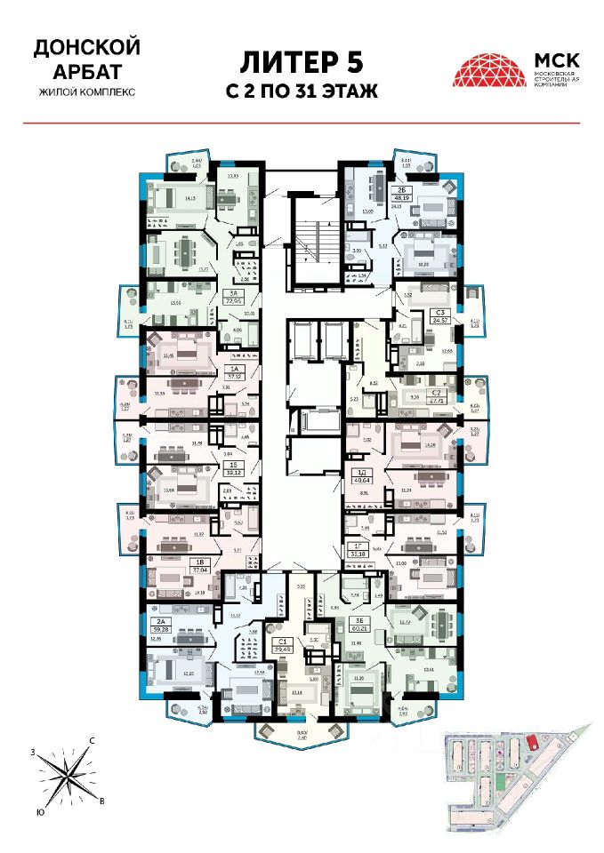 - Монолитно-каркасная технология строительства. - Облицовка кирпич в соответствии с ГОСТом - Срок ввода в эксплуатацию II квартал 2025 года. - 5 литеров по 17-32 этажа. - Расположен в центре города. - Благоустроенный двор с детскими и спортивными площадками. - Наземный паркинг. - Магазины в доме. - Консьерж-сервис. - Квартиры разных форматов.