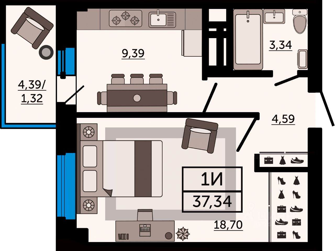 В продаже однокомнатная квартира в новостройке, в стройварианте. Лучшее решение для молодой семьи, под сдачу или для инвестиций. Это классическая комфортная планировка однокомнатной квартиры. Здесь уютная кухня и просторная комната с местом для хранения вещей и рабочей зоной. Дополнительный плюс большое окно в основном помещение, благодаря чему у вас в квартире всегда будет светло. Наиболее выгодная цена на начальном этапе строительства. Успейте забронировать квартиру напрямую от застройщика.