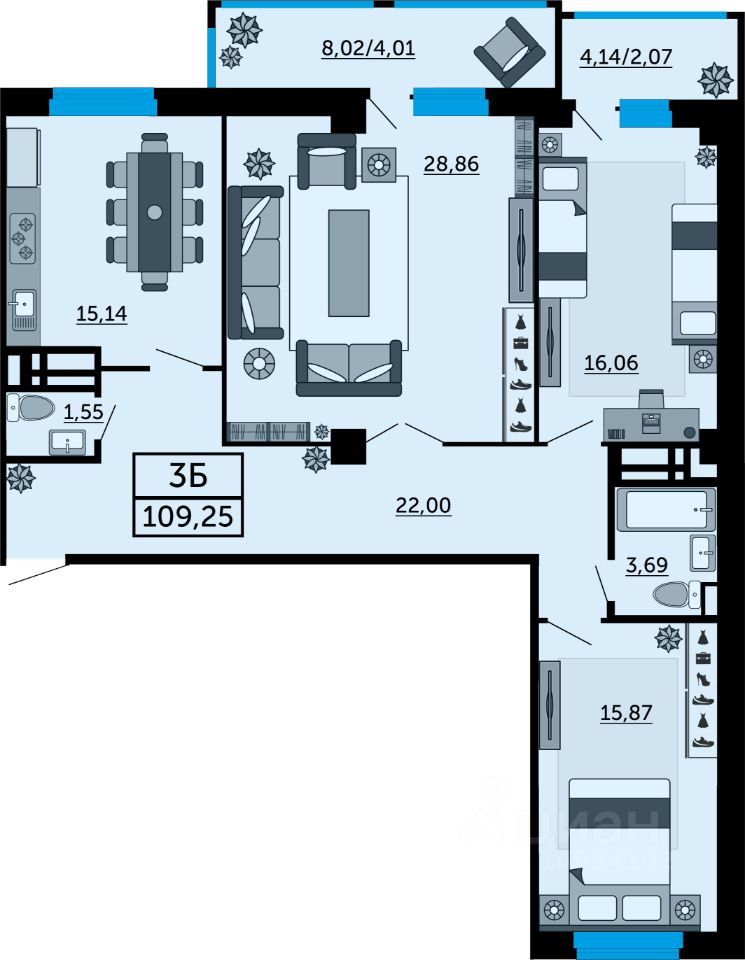 В продаже трехкомнатная квартира в новостройке, в стройварианте. Лучшее решение для жизни, под сдачу или для инвестиций. Планировка квартиры организована с учетом максимальной функциональности, чтобы обеспечить уют будущих жильцов. Основные преимущества, которые создадут комфортное пространство: раздельный санузел, гардеробная и большой балкон, который объединяет две комнаты. Наиболее выгодная цена на этапе строительства. Успейте забронировать квартиру напрямую от застройщика.