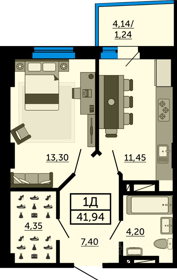В продаже однокомнатная квартира в новостройке. Лучшее решение для молодой семьи, под сдачу или для инвестиций. В однокомнатной квартире есть, всё необходимое для комфортной жизни: просторная прихожая, светлая комната и гардеробная. Это функциональный лот, который подойдет на самый взыскательный вкус. Успейте забронировать квартиру напрямую от застройщика.