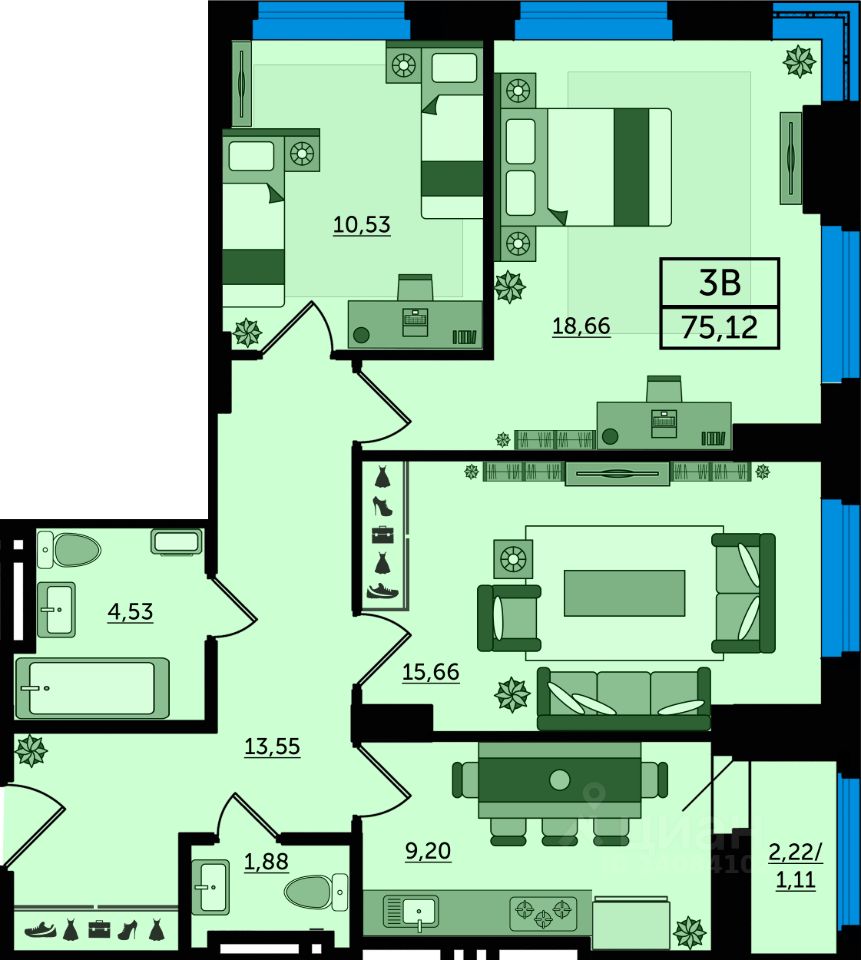 В продаже трехкомнатная квартира в новостройке, в стройварианте. Лучшее решение для жизни, под сдачу или для инвестиций. Просторная прихожая в данной планировке даёт достаточно места для хранения. Одним из главных преимуществ этой квартиры - три комнаты одинакового размера. Это означает, что каждый член вашей семьи может наслаждаться своим собственным пространством, будь то спальня, гостиная или рабочий кабинет. Наиболее выгодная цена на этапе строительства. Успейте забронировать квартиру напрямую от застройщика.