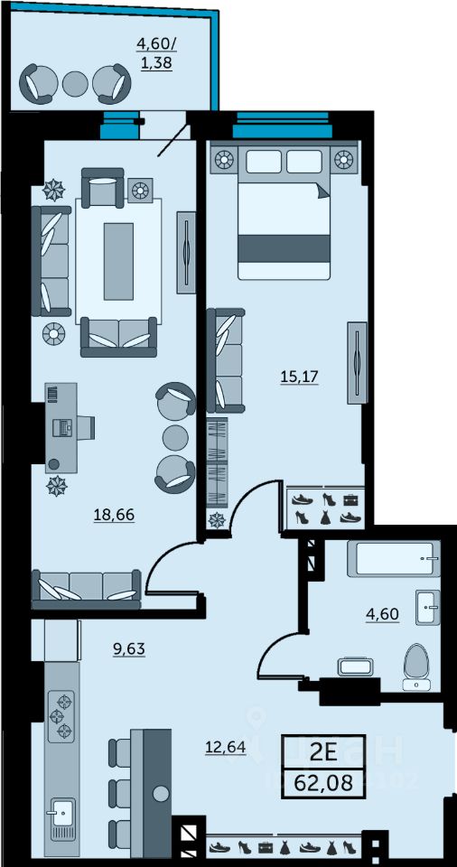 В продаже двухкомнатная квартира в новостройке. . Лучшее решение решение для жизни, под сдачу или для инвестиций. Данная планировка это двухкомнатная квартира евроформата и современное решение для тех, кто ценит функциональность пространства. Здесь есть всё для ваших идей и потребностей: универсальные по размеру комнаты, большая прихожая и собственный балкон. Наиболее выгодная цена на этапе строительства. Успейте забронировать квартиру напрямую от застройщика.