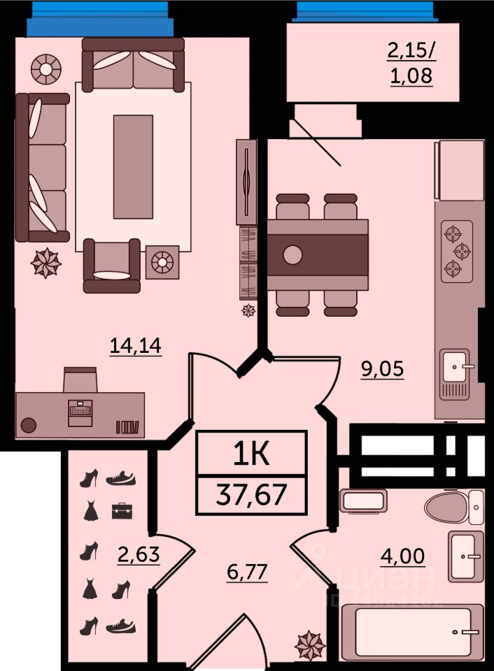 Общая площадь37,67 м2