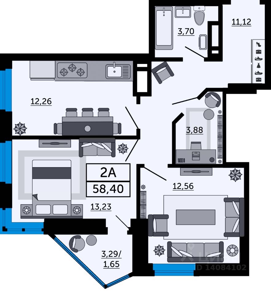 В продаже двухкомнатная квартира в новостройке, в стройварианте. Лучшее решение для жизни, под сдачу или для инвестиций. Данная планировка это двухкомнатная квартира, с видом на две стороны. Планировка идеально подходит тем, кто ценит функциональность пространства. Здесь есть всё для ваших идей и потребностей: универсальные по размеру комнаты, большая прихожая и главная особенность отдельное помещение, которое можно обустроить как кабинет или большую гардеробную. Наиболее выгодная цена на этапе строительства. Успейте забронировать квартиру напрямую от застройщика.