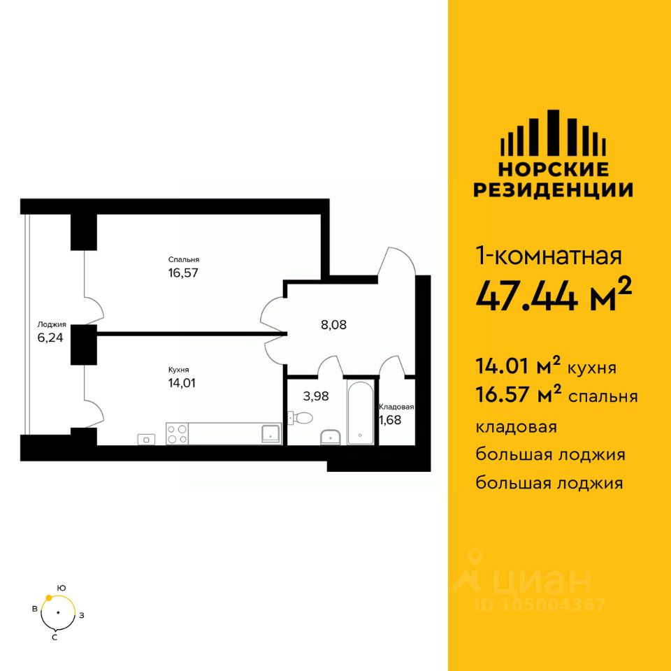 Общая площадь47,44 м2