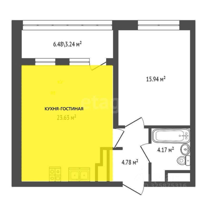 Общая площадь48,52 м2