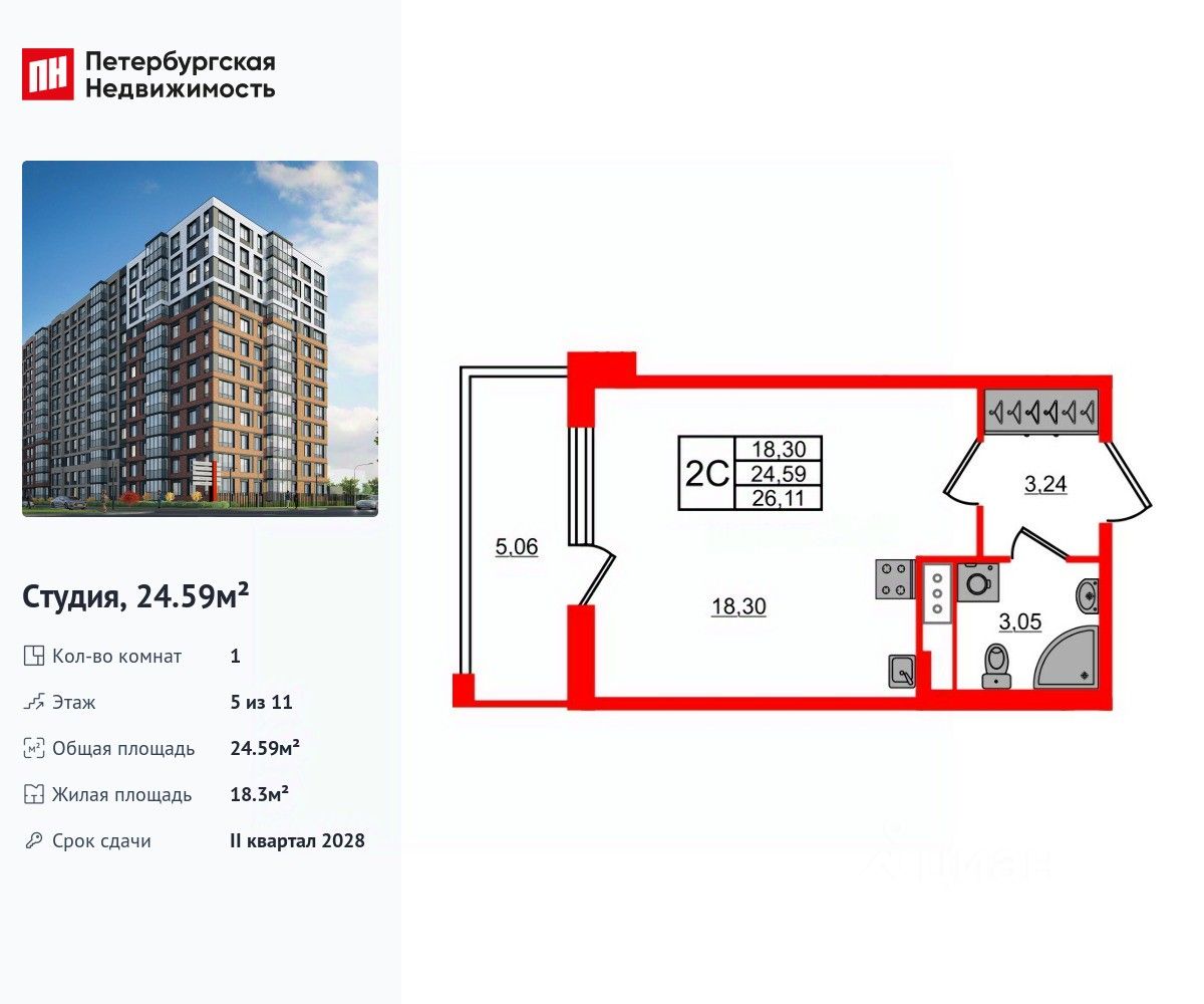 Общая площадь24,59 м2