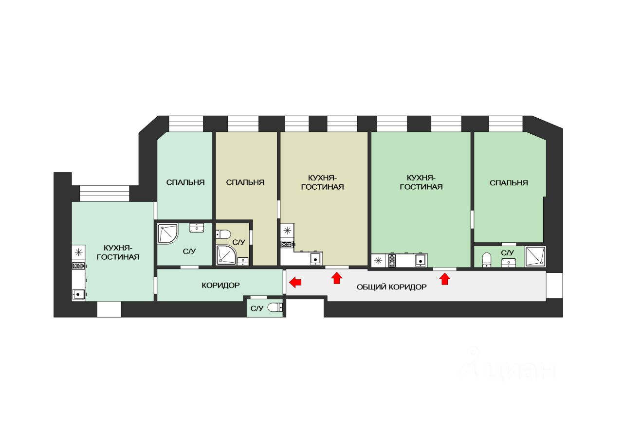 Предлагается к продаже квартира состоящая из трёх отдельных однокомнатных квартир, в каждой есть кухня-гостинная, спальня, сан.узел, всё отмечено на планировке. Самый центр Санкт-Петербурга, улица Восстания, дом 20, где в 1904 году жил писатель Максим Горький. Дом построен в 1897 году, всего 5 этажей. Квартира на 4-ом этаже, лифта в парадной нет.