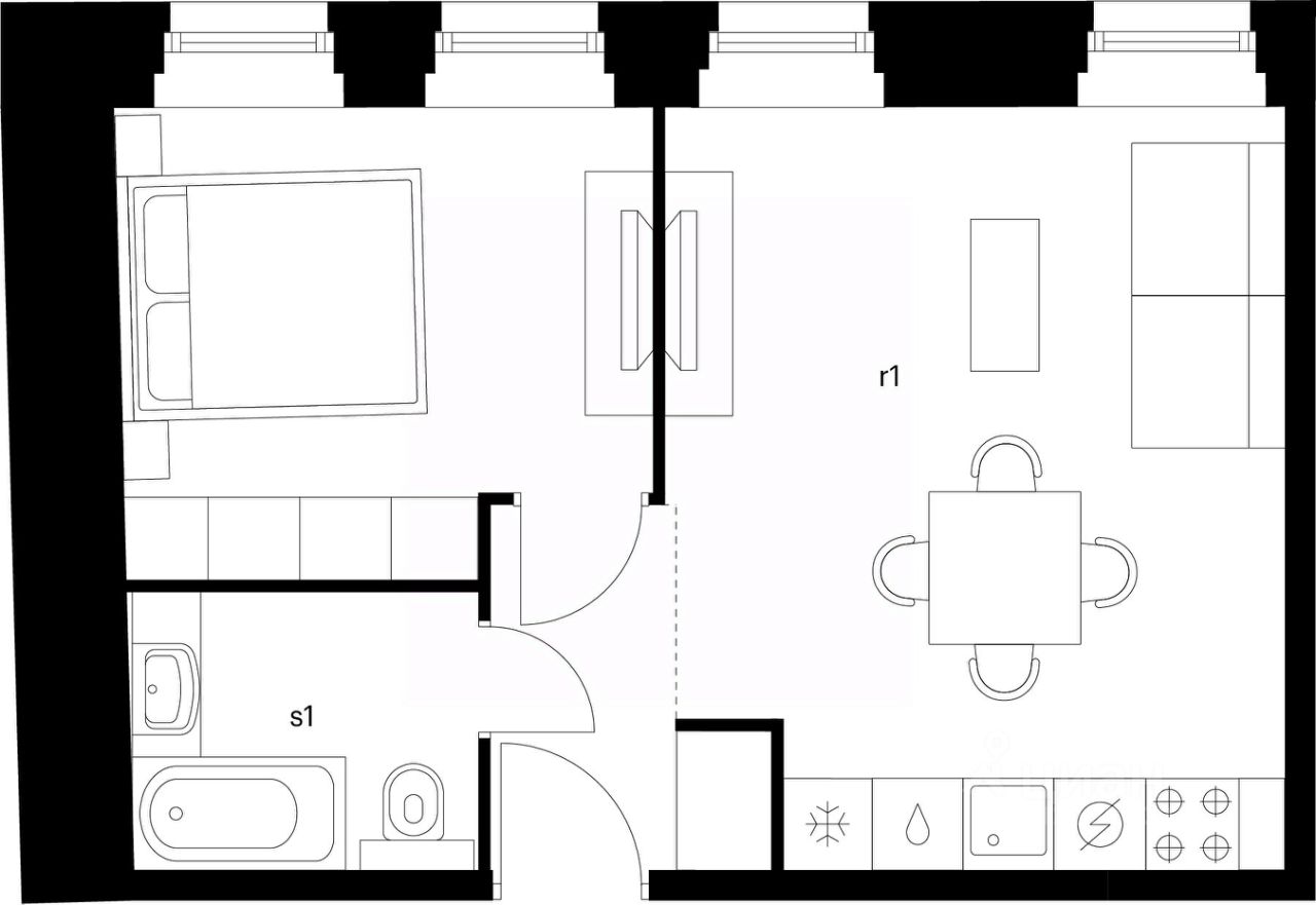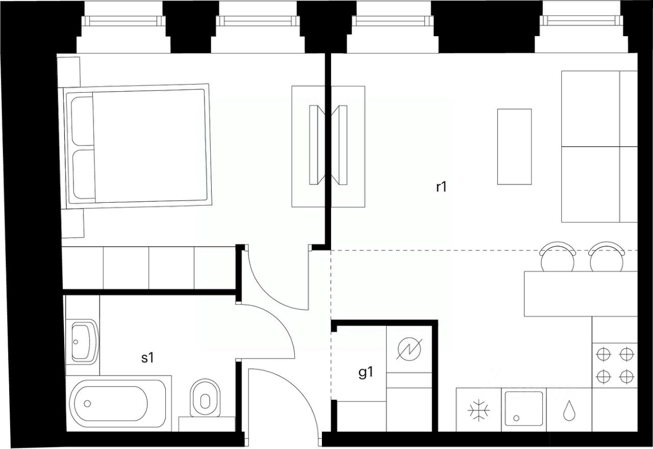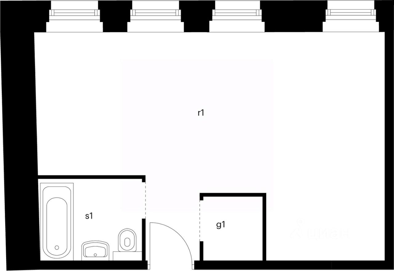 В продаже 1-комнатный апартамент 37,64 м2 со свободной планировкой и высокими потолками 3,3 м до верхней части перекрытия.