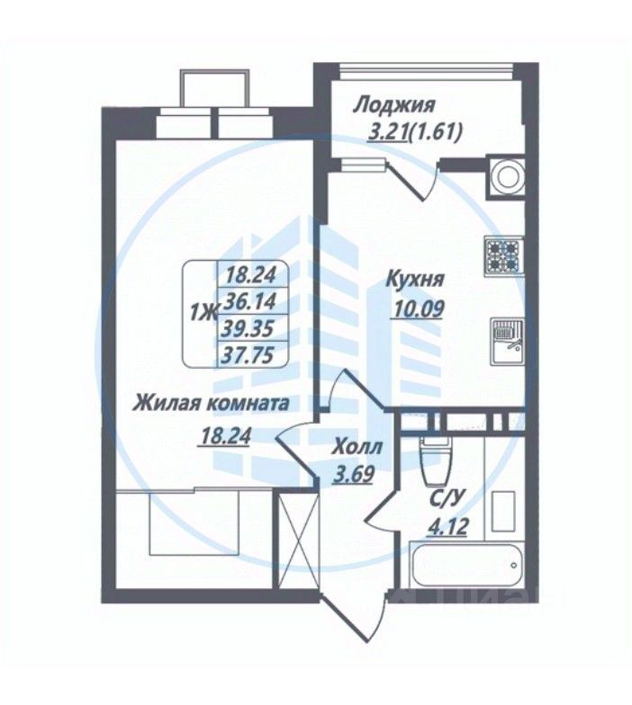 Современная планировка: кухня с выходом на застекленную лоджию, просторная спальня с местом под гардеробную, сан/узел, Отделка квартиры: цементно-песчаная стяжка пола, штукатурка стен, электричество введено, приборы учета, Индивидуальное отопление, двухконтурный котел и радиаторы, Входная дверь металлическая, повышенной прочности с сейфовым замком.