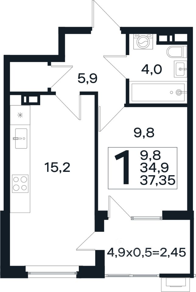 Общая площадь37,35 м2