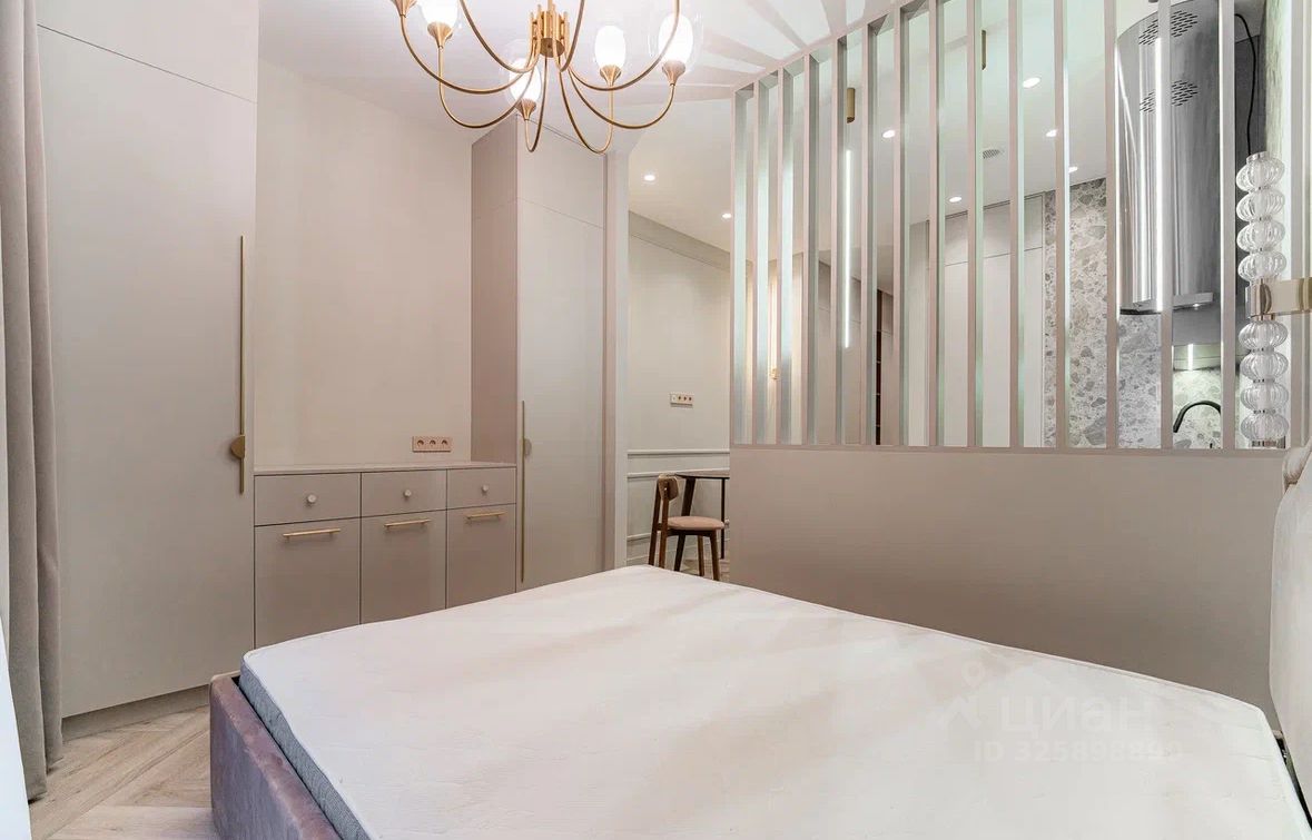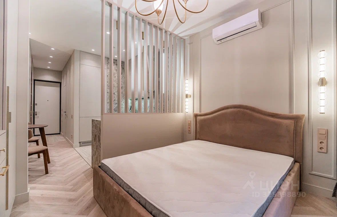 Зонирование спального места, создает комфортное пространство. Вместительные системы хранения, теплые полы, кондиционер.