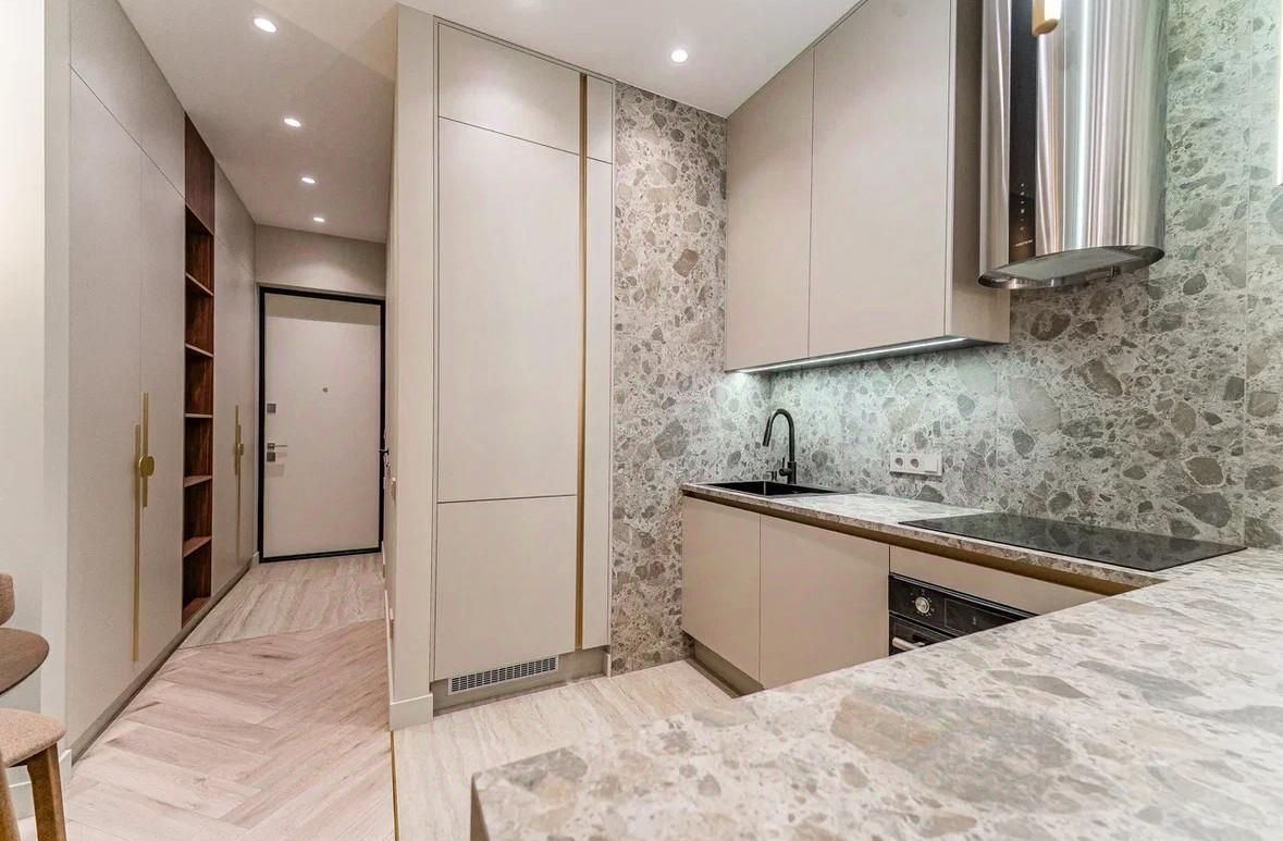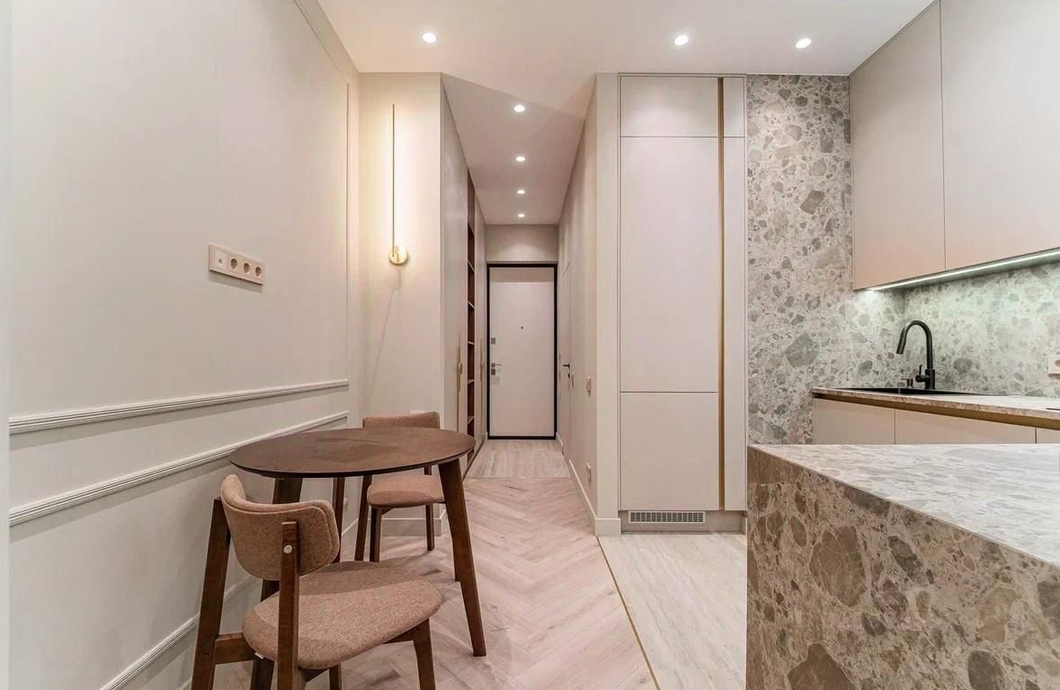 Квартира расположена на 4м этаже. Общая площадь 28 м2, дизайн проект выполнен с помощью качественных материалов и бытовой техники.