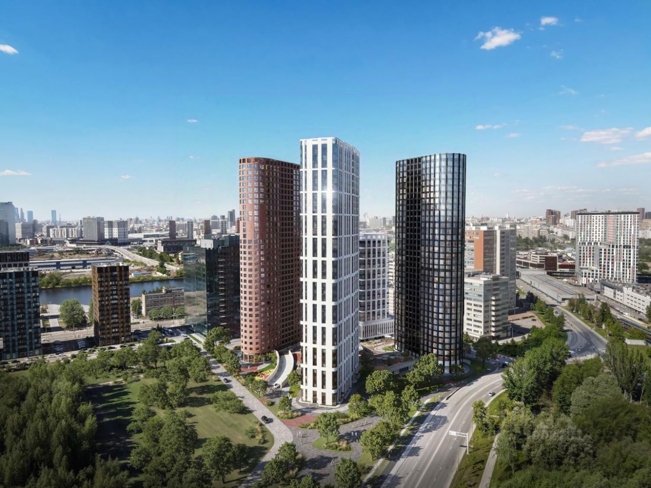 Панорамный вид на Москва-Сити, Нагатинскую пойму и набережную Марка Шагала.