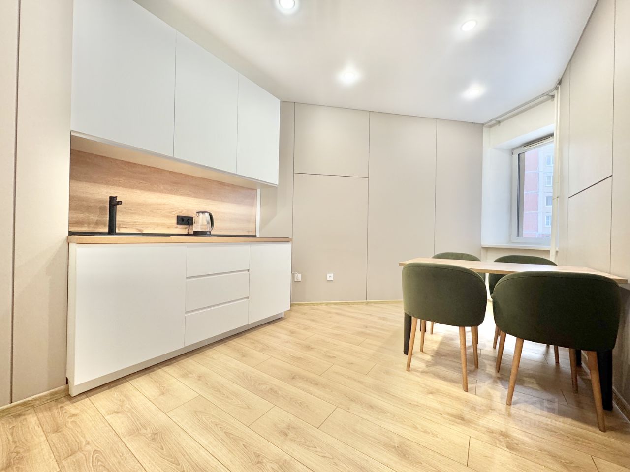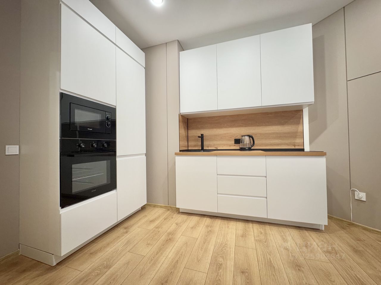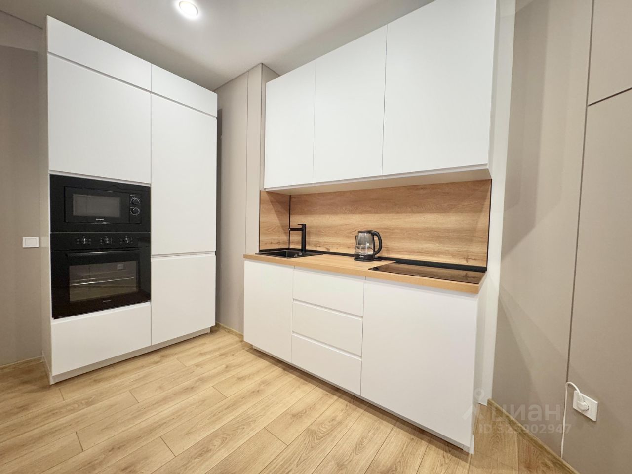 Полностью укомплектованная кухня: кухонный гарнитур, стол, стулья, посудомоечная машина, холодильник, варочная поверхность, духовой шкаф,