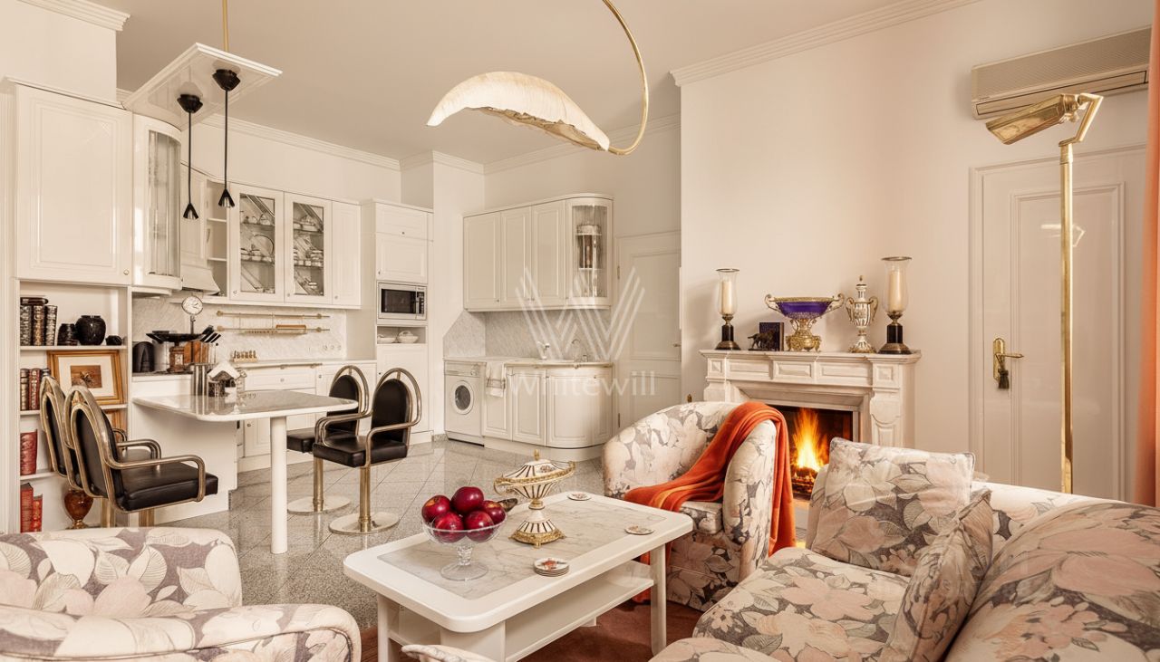 Здесь много воздуха: площадь 170 м² и потолки 3,5 метра — объем, недоступный современным новостройкам. Гостиная (54 м²) наполнена светом, который подчеркивает панели из натурального дерева Truggelmann. Центр притяжения — дровяной камин. Живой огонь, бокал вина и абсолютная тишина станут вашим ритуалом завершения дня.