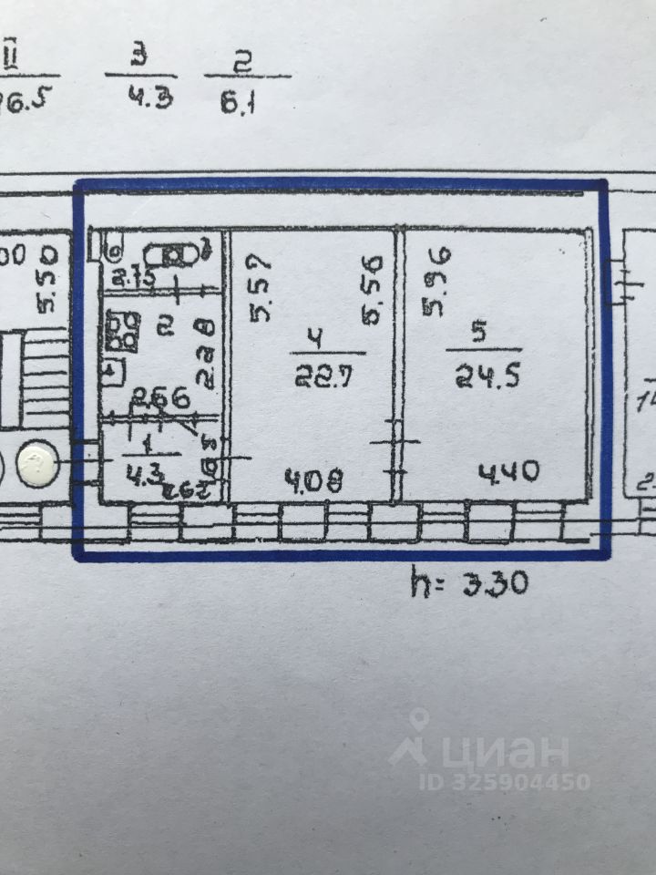 О КВАРТИРЕ: Квартира с односторонней планировкой (см. фото): - общая площадь 61,9квм, жилая 47,2 квм комнаты смежные (24,5+22,7) квм, квадратная кухня 6,1квм, - высокие потолки 3,3м, - на полу в комнатах паркет в хорошем состоянии, - на этаже всего две квартиры. Приятная панорама из окон зеленые насаждения и спокойный двор.