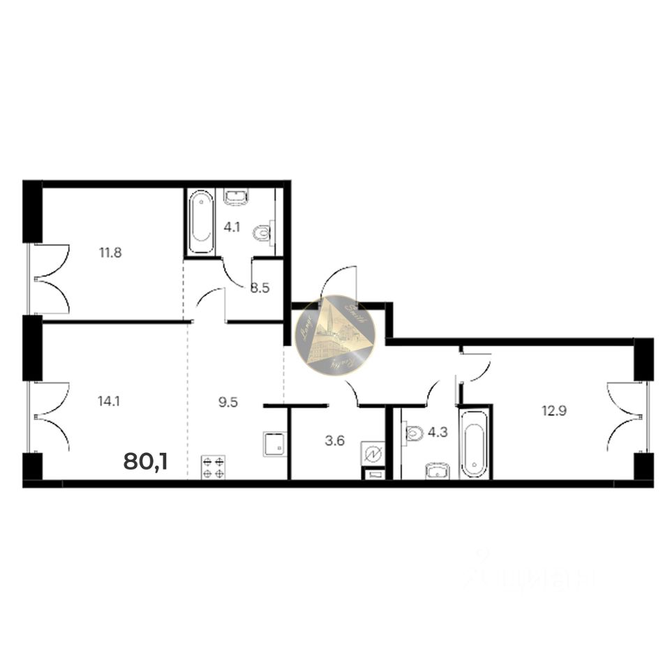 О квартире: - Квартира находится на 4 этаже 9-этажного дома - Общая площадь квартиры 80.1 м2 - Мастер-спальня 11.8 м2 с отдельным санузлом 4.1 м2 и гардеробной 3.5 м2 - Уютная детская 12.9 м2 - Просторная кухня-гостиная 23.6 м2 - Совмещённый санузел 4.3 м2 - Постирочная 3.6 м2
