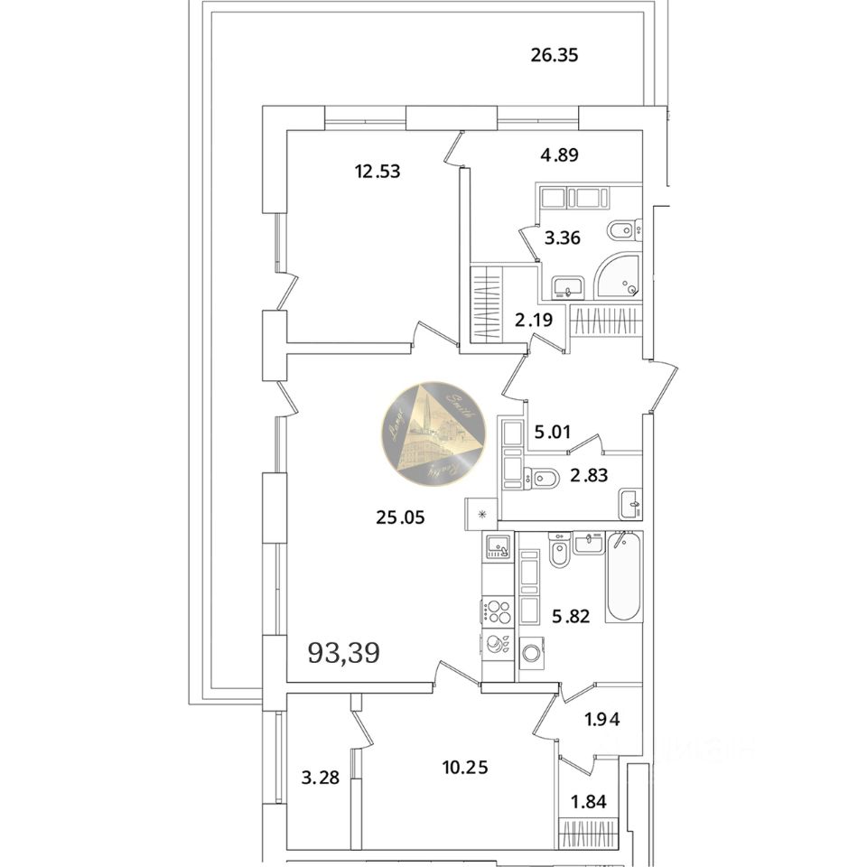 О квартире: - Квартира находится на 18 этаже 22-этажного дома - Общая площадь квартиры 93.39 м2 - Мастер-спальня 12.53 м2 с отдельным санузлом 3.36 м2 и гардеробной с окном 4.89 м2 - Детская комната 10.25 м2 с отдельным санузлом 5.82 м2 и гардеробной 1.84 м2 - Просторная кухня-гостиная 25.05 м2 - Гостевой санузел 2.83 м2 - Гардеробная 2.19 м2 - Лоджия 3.28 м2 - Терраса 26.35 м2