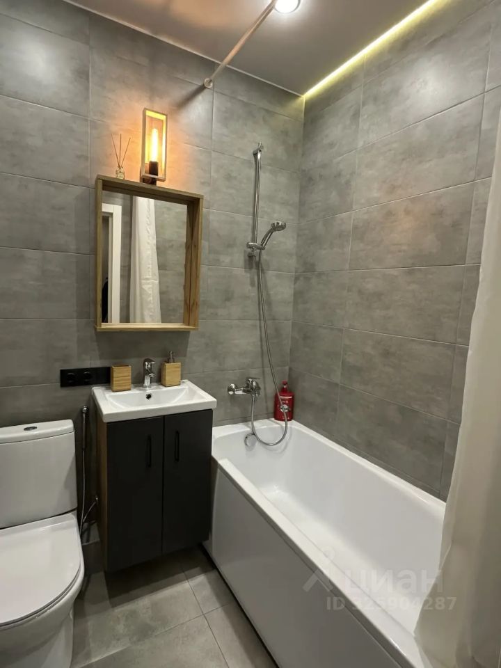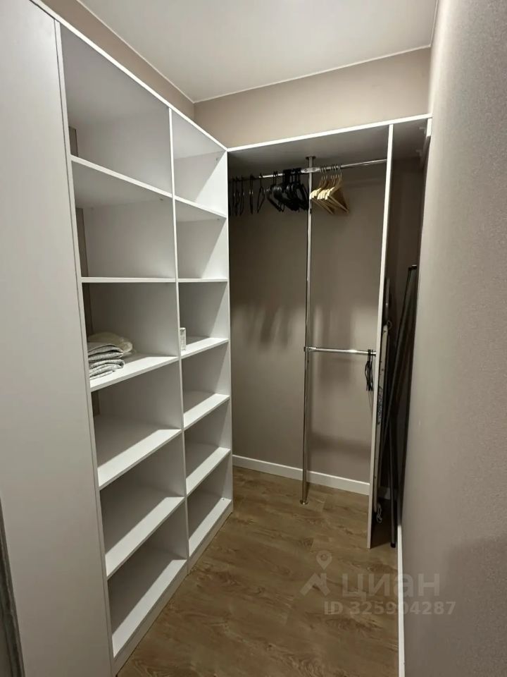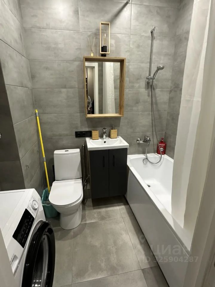 В гостиной уютный угловой диван и телевизор. Из мебели также имеется вместительный шкаф-купе и гардеробная. Ванная комната совмещенная, с современной сантехникой и стиральной машиной.
