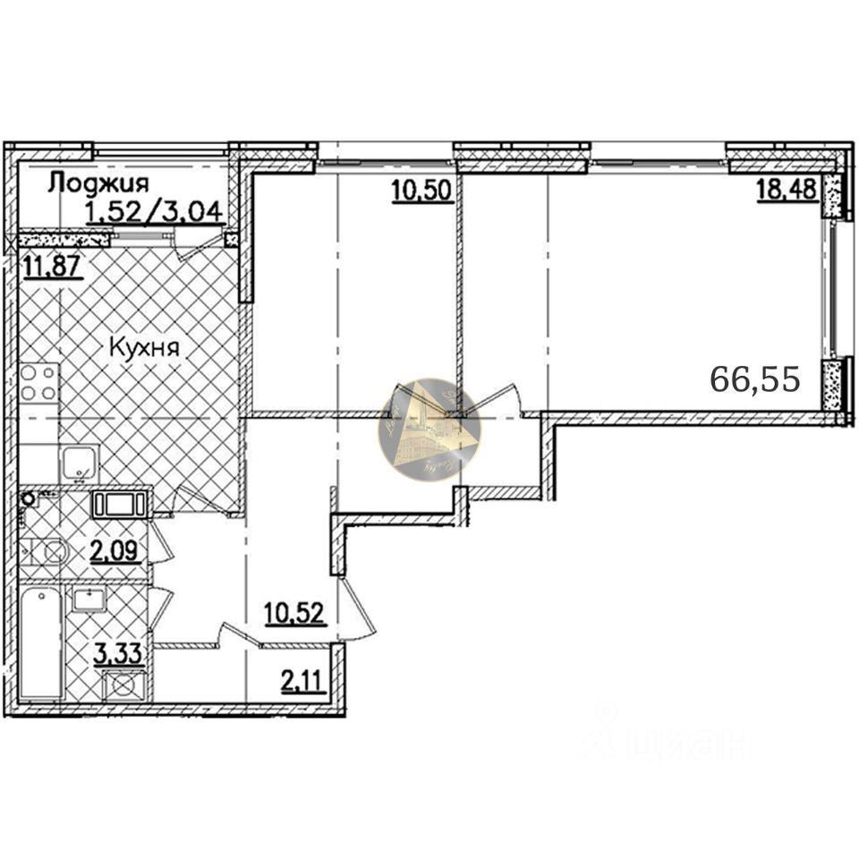 О квартире: - Квартира находится на 11 этаже 22-этажного дома - Общая площадь квартиры 66.55 м2 - Просторная спальня 18.48 м2 - Светлая детская 10.50 м2 - Уютная кухня 11.87 м2 - Раздельный санузел 3.33 + 2.09 м2 - Гардеробная 2.11 м2 - Застеклённая лоджия 3.
