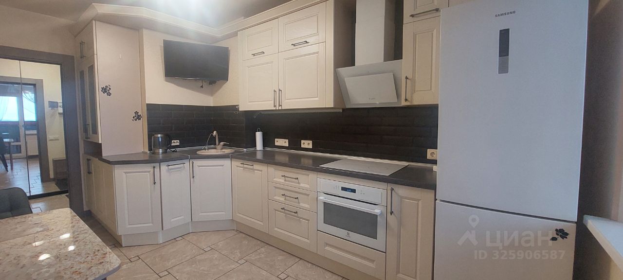 Большая кухня, есть вся техника: варочная поверхность, духовка, вытяжка, холодильник, посудомоечная машина, кондиционер, телевизор, эл.чайник.