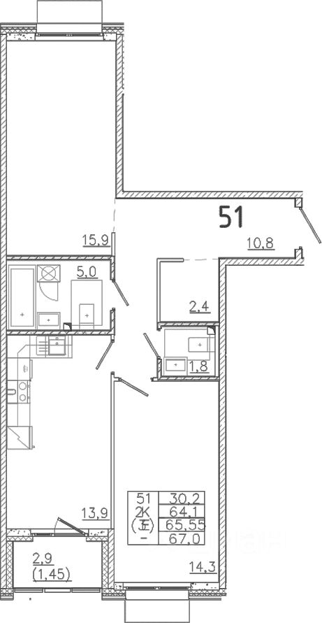 продам 2-к, Авиационная, 5 корп. 114 900 000 ₽