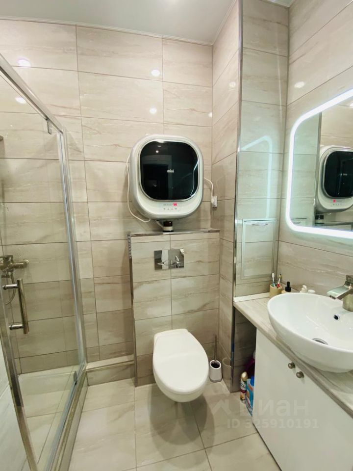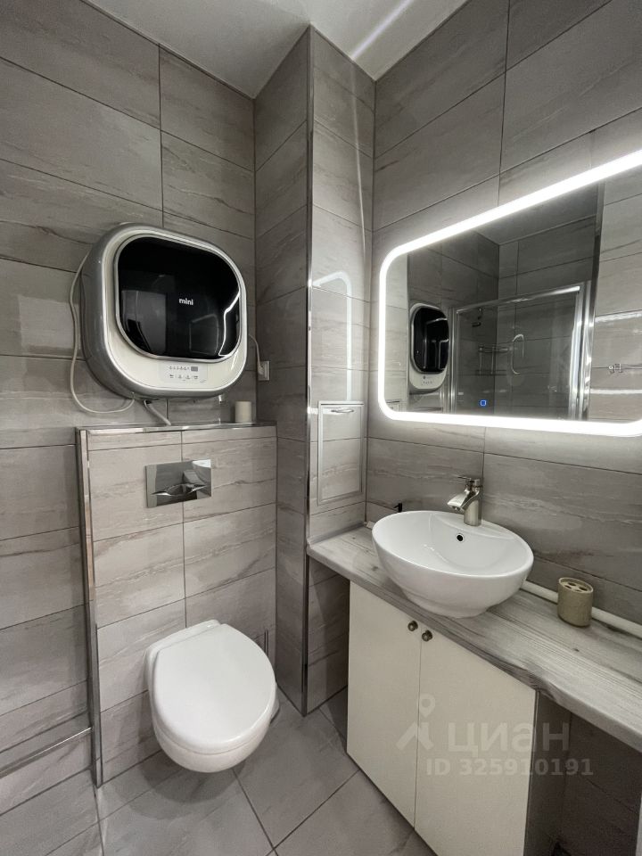 Санузел (совмещенный): • Душевая кабина, стиральная машина • Шкафчик • Зеркало с подсветкой