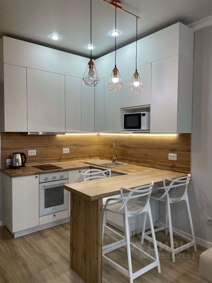 • Просторная кухня с гарнитуром до потолка • Встроенная техника: холодильник, духовка, варочная панель, микроволновка, чайник. • Набор посуды, столовые приборы и кухонные принадлежности • Удобный раскладной диван и телевизор 40 • Барный стол с 4 стульями • Вместительный шкаф до потолка, комод • Пылесос, гладильная доска, сушилка для белья.
