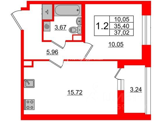 Продается уютная однокомнатная квартира в современном кирпичном доме, построенном в 2025 году. Общая площадь квартиры составляет 35.1 кв. м, из которых 15 кв. м занимает просторная кухня. Квартира расположена на 10-м этаже 12-этажного дома. Высота потолков 2.75 метра создаёт ощущение простора. Окна выходят во двор, поэтому в квартире тихо и спокойно.