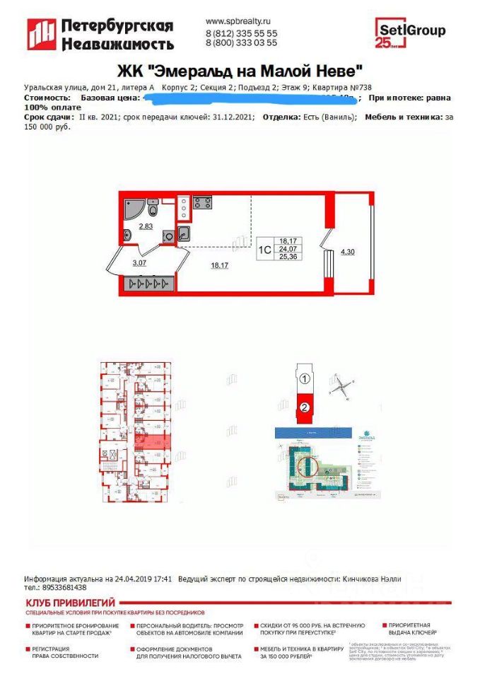 Район дома предлагает все необходимые удобства: поблизости находятся школы, детские сады, клиники и магазины. До станции метро ''Приморская'' всего 21 минута пешком, что обеспечивает удобную транспортную доступность.