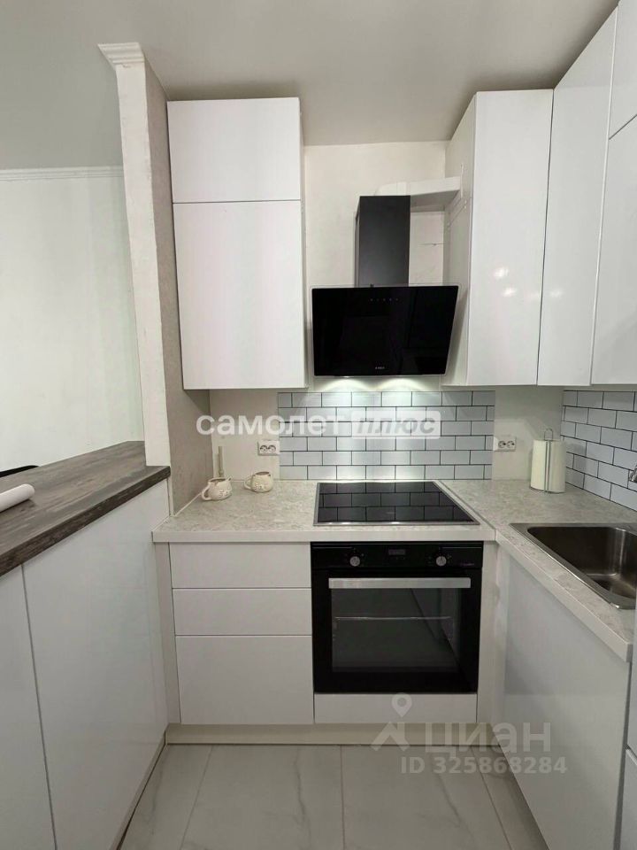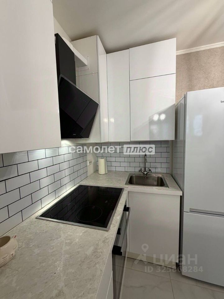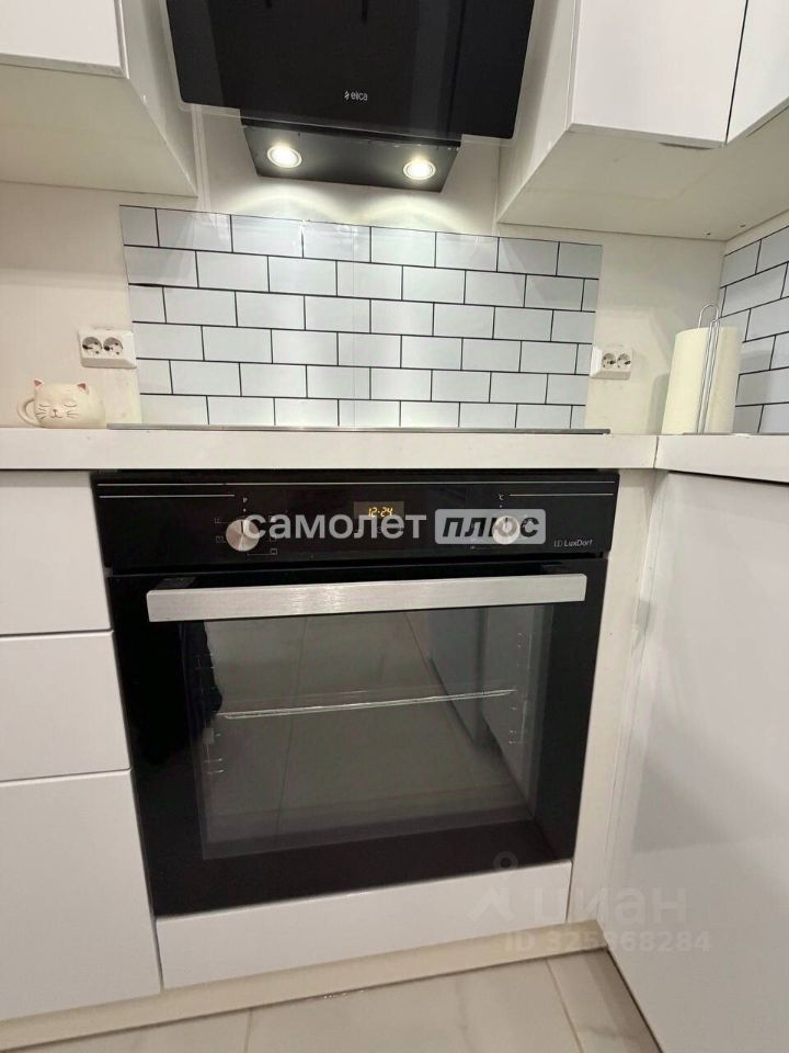 Полноценный кухонный гарнитур, зонированное пространство. Встроенный духовой шкаф, варочная поверхность, вытяжка, стиральная машина и холодильник. Спальное место, шкаф, рабочий стол с креслом, TV.