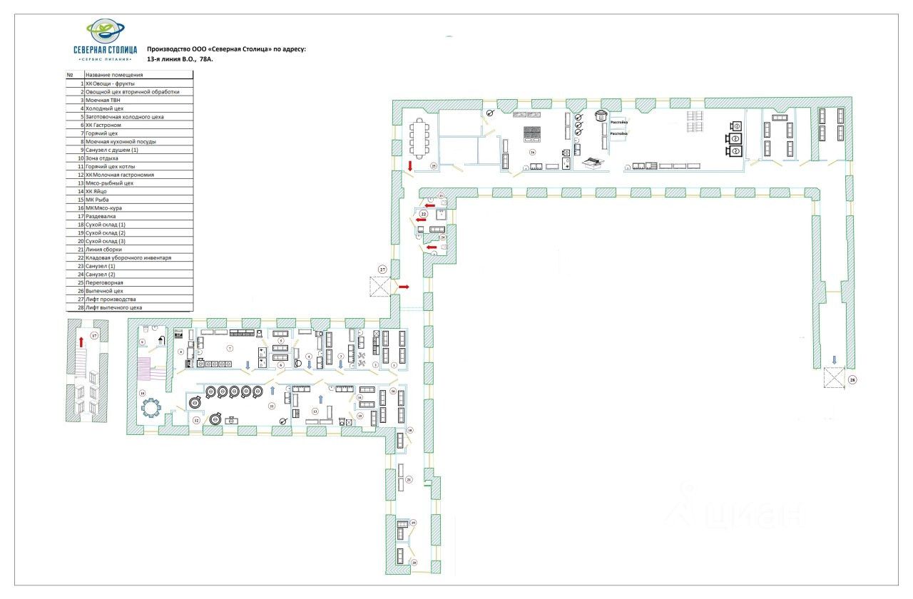 Оснащение и инженерия. Производство передаётся с полным комплектом современного высокотехнологичного оборудования. Всё оборудование обслуживалось своевременно и профессионально Приточно-вытяжная вентиляция Пожарная сигнализация Электрическая мощность — 250 кВт Отдельный грузовой лифт (до 500 кг) Видеонаблюдение, СКУД 3 отдельных входа Раздевалки и душевые КПП, охрана и доступ к пищеблоку 24/7 грузовой лифт! Возможна единовременная работа бригады 3545 человек.