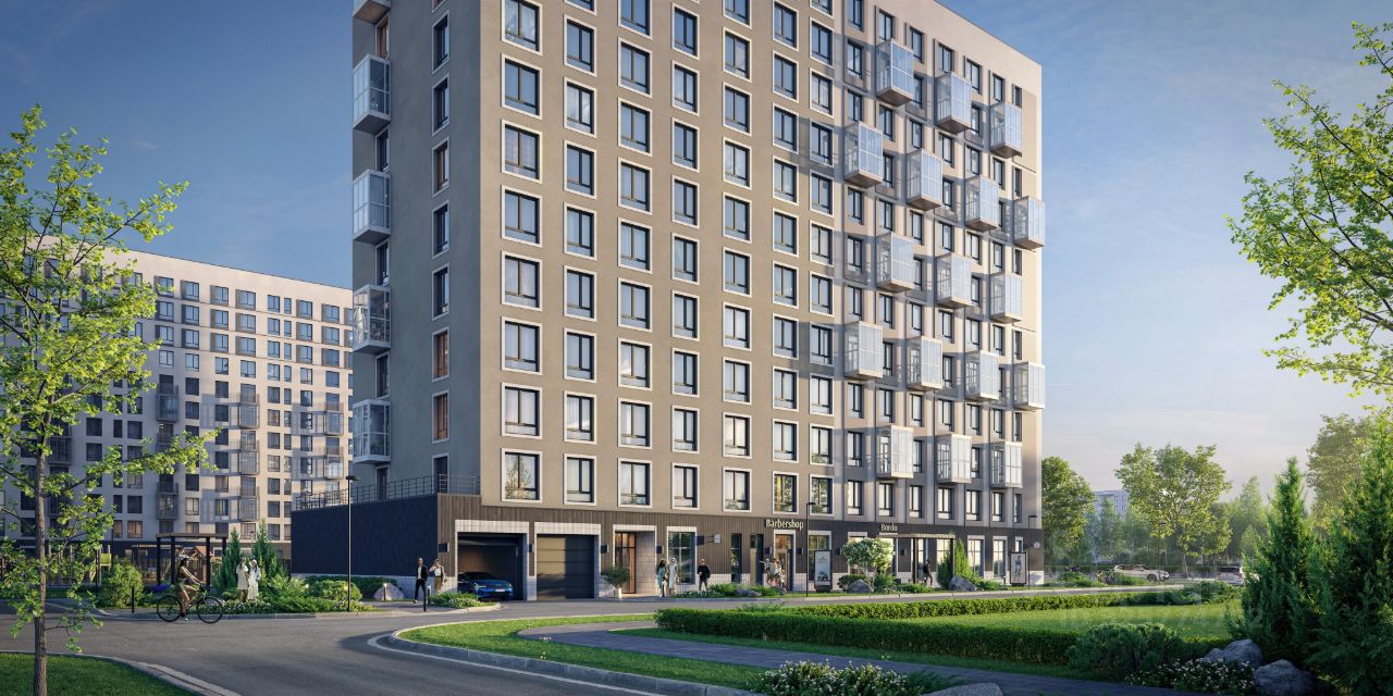 Камерные монолитно-кирпичные дома высотой до 12 этажей с панорамным остеклением балконов и первых этажей.