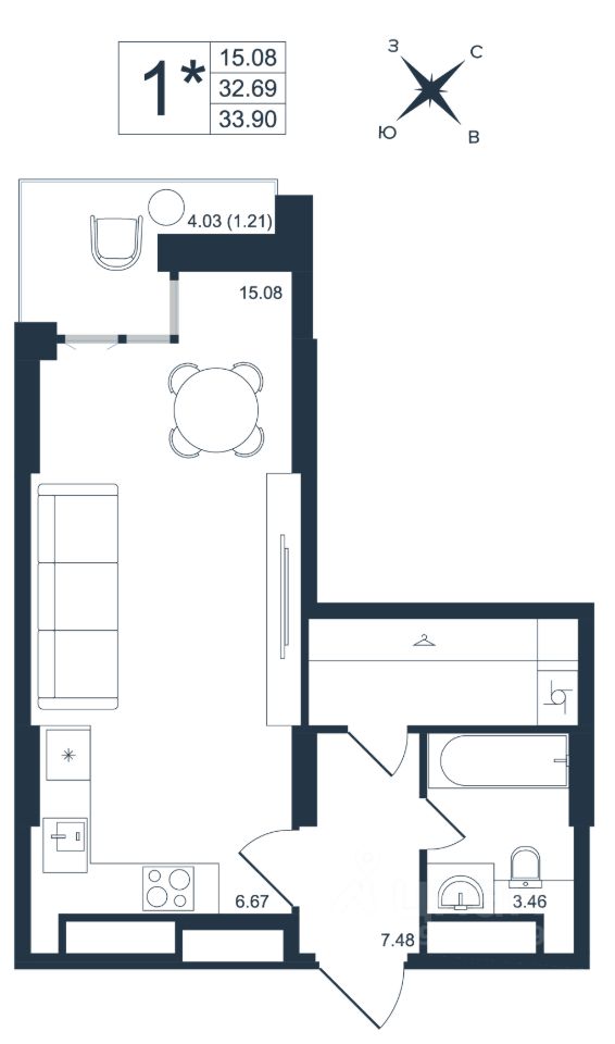Продаётся 1-комнатная квартира в строящемся доме (Дом 1), срок сдачи: III-кв. 2027, общей площадью 33.9 кв.м., на 17 этаже. Новый жилой комплекс ''Архитектор'' от группы компаний ''Девелопмент-Юг'' расположен по адресу: г. Владивосток, по ул. Бежецкая.