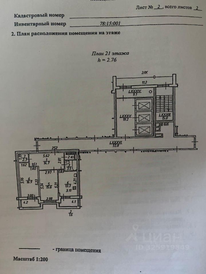 Продается просторная 2-комнатная квартира в Санкт-Петербурге на Лыжном переулке, 2. Общая площадь составляет 67.7 кв. м, жилая — 43.6 кв. м, а кухня — 13.3 кв. м. Квартира находится на 21-м этаже 22-этажного кирпичного дома 2012 года постройки. Высота потолков — 2.76 метра. Из окон открывается вид на улицу.