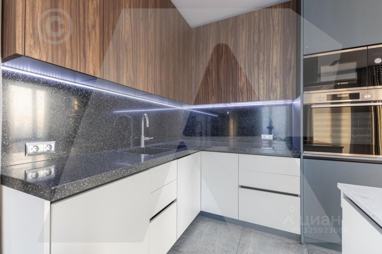 Преимущества: В отделке использованы высококачественные и натуральные материалы. Квартира укомплектована премиальной техникой Bosch, установлена кухня. Все продумано до мелочей для комфортного проживания. Кондиционирование воздуха и вентиляция. Квартира в светлых тонах, высокий этаж дает хороший уровень естественного освещения.