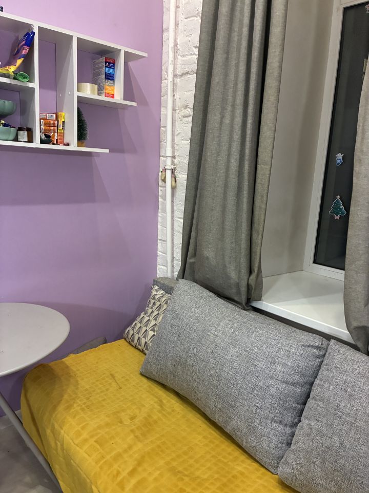Сдаётся уютная студия в историческом центре города, в 19 минутах пешком от станции метро ''Чернышевская''. Квартира расположена на первом этаже семиэтажного кирпичного дома, построенного в 1913 году. Высокие потолки 3.4 метра создают ощущение простора даже в компактных 12 квадратных метрах.